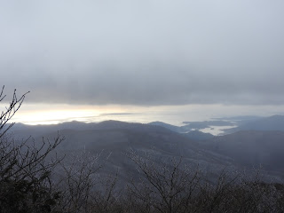 沿岸方面はやや明るいが山頂方面は雲が厚く怪しげだ